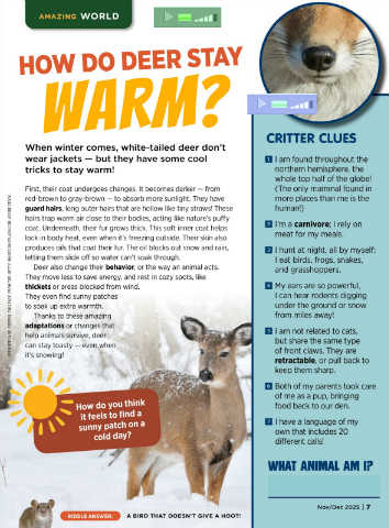 Deer also change their behavior, or the way an animal acts. and grasshoppers.