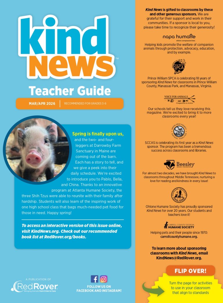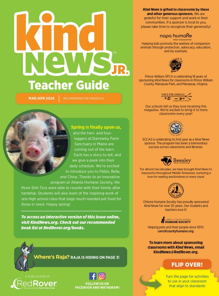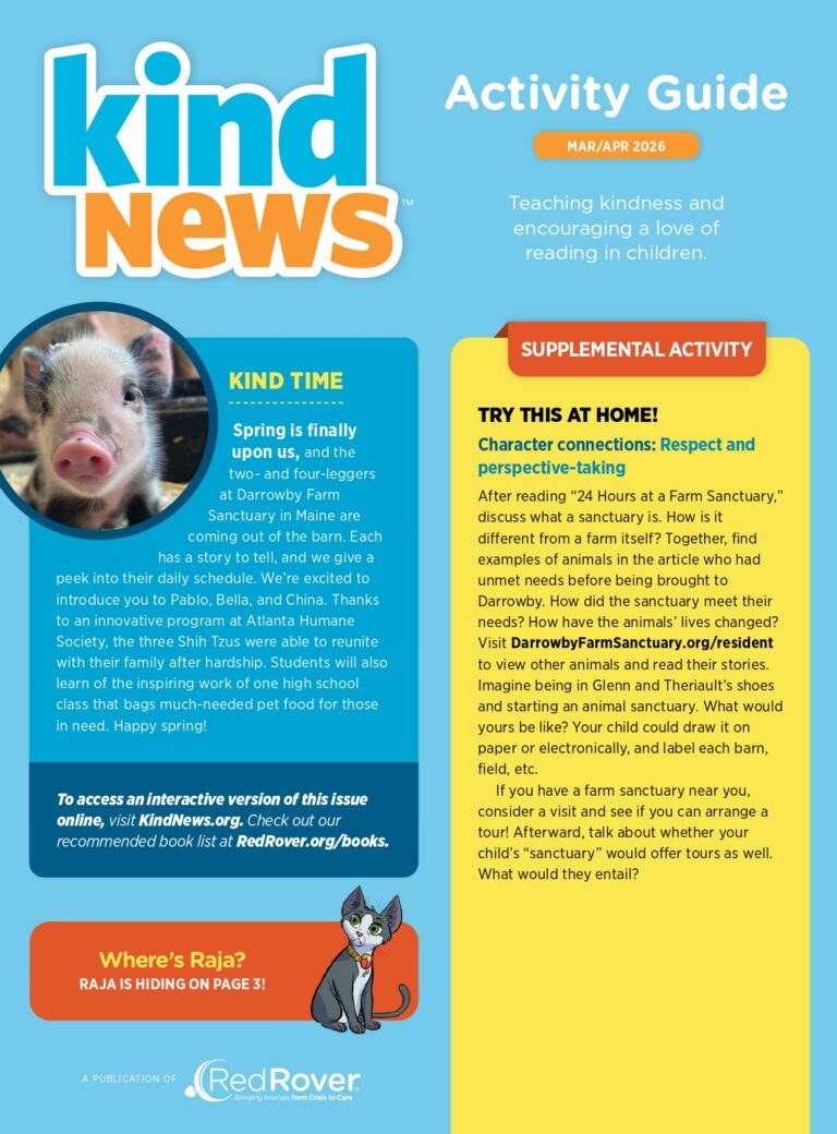 Teachers and guardians, you can share the links below with your students and children. Send us your feedback at KindNews@RedRover.org or contact us here.